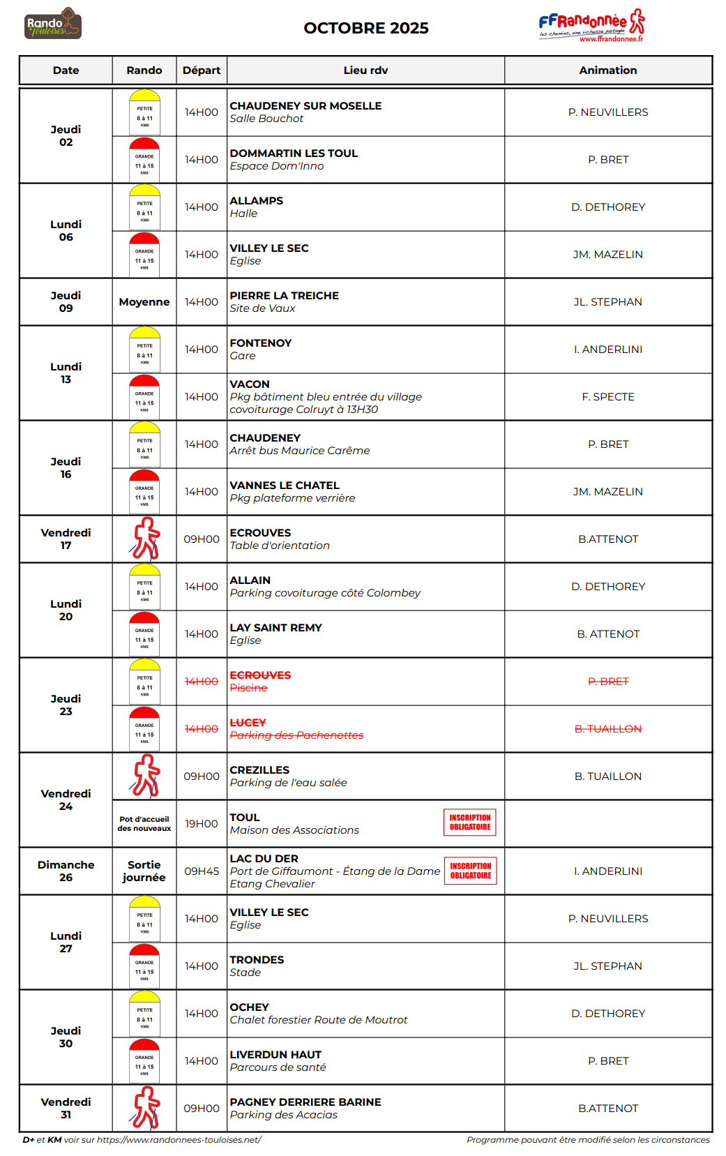 Randonnées octobre 2025