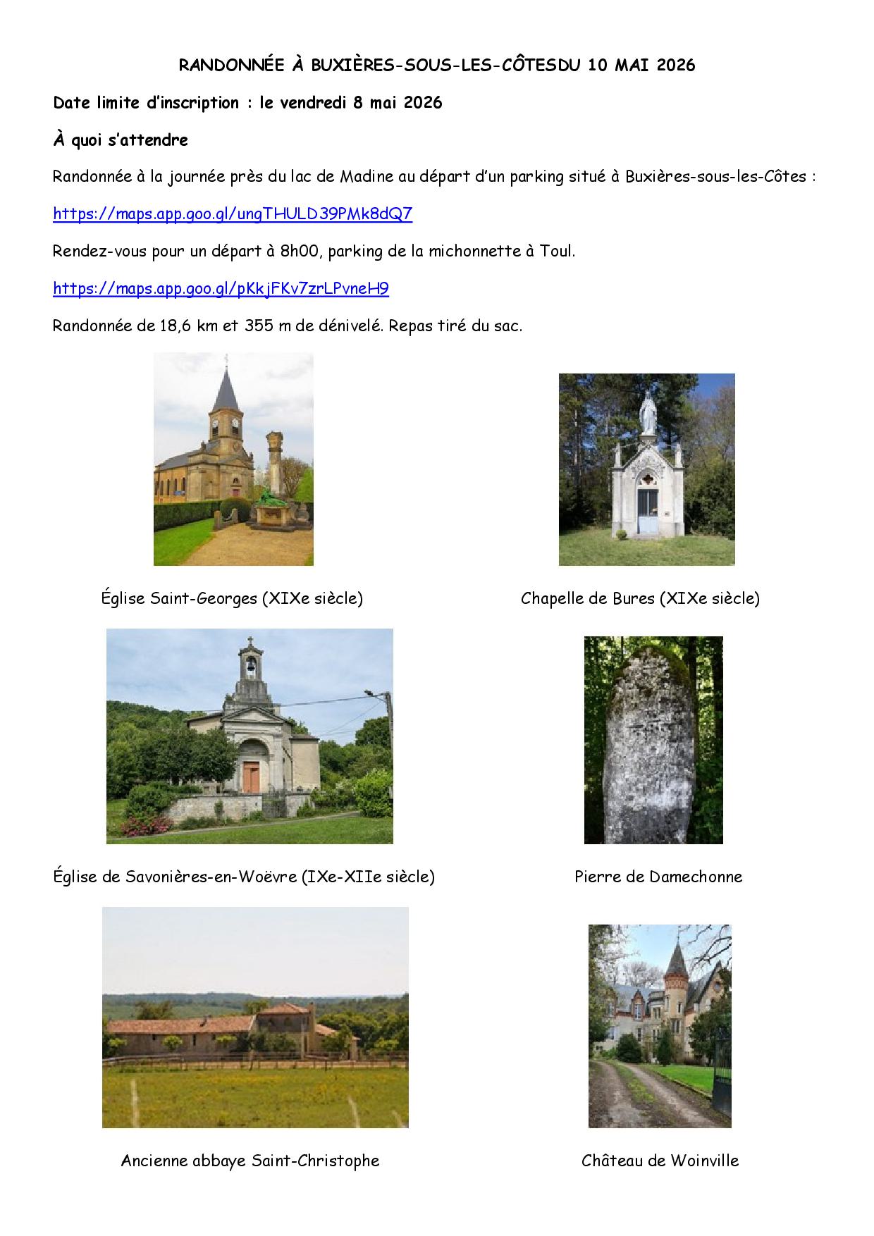 sortie journée à buxières sous les côtes du 10 mai 2026 (date limite d'inscription 8 mai)